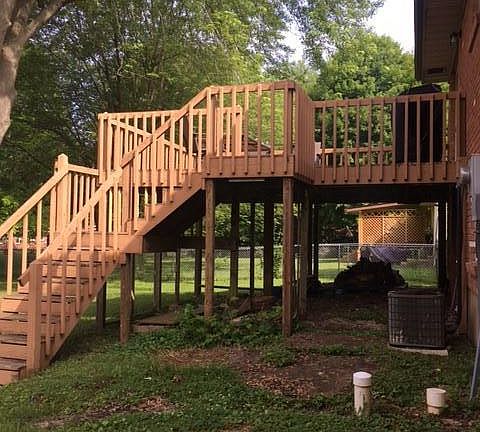 Suburban living while still close to all the amenities. This great split-foyer home offers three bedrooms and three baths, a full basement, large deck and fence back yard, all while located in a great neighborhood just a few blocks from a school. You'll be within walking distance of historic downtown Farmington. There's plenty of room to live, play and relax. The downstairs features a large family room complete with working wood-burning fireplace. There's a sizable laundry room with built in shelving and storage space. The living room and hallway have updated wood flooring. Sliding glass doors lead onto the deck on the main level, and onto a concrete patio area downstairs. The chain link fenced yard with two massive shade trees is perfect for a pet. You'll have off-street parking on the concrete drive and covered parking area.