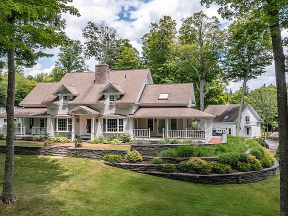 Heron's Nest is a Stowe Hollow family compound with two residences on 20 private acres. An ideal property for the sports and outdoor enthusiasts to enjoy all year round with your own tennis court, basketball court, volleyball court, shuffleboard court, horseshoe pit, and gorgeous natural pond with diving board, floating and fixed docks, a waterslide and zip-line. The main house has 5 bedrooms and 4 1/2 baths with patios, covered wrap-around porches. The guest house has 2 separate guest suites and its own hot tub. Add to all that, manicured woods, trails and a convenient location and you have a "best in class" property. Offered completely furnished with excellent rental history - this is truly unique.
