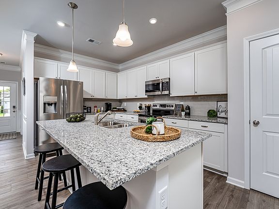The Piedmont by Smith Douglas Homes at Baker Creek Place. An outstanding ranch plan, the Piedmont is efficiently packed with all the essential elements demanded by today's lifestyles along with several surprising touches. This 3-bedroom 2-bath design greets you with a covered front porch that leads to an open layout with a front flex room and centrally-located island kitchen. The spacious family room has direct access to the rear yard, which is also enjoyed through views from the luxurious owner's suite. Secondary bedrooms are served by deep walk-in closets and conveniently located hall bath and laundry room. Estimated Completion of this home is 6/26/2024.