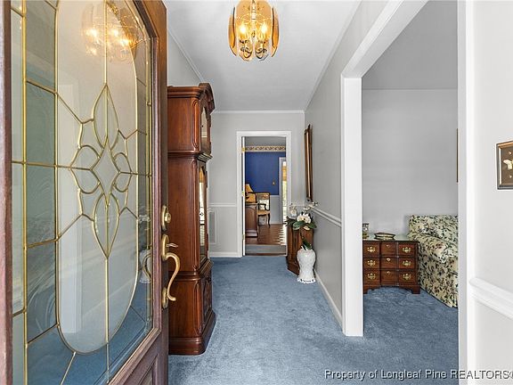 This beautiful Ranch-Style home will steal your heart. This turnkey property of 2182sqft is on a corner lot and features 3 bedrooms, 2 bathrooms, remodeled kitchen with beautiful quartz countertops and new appliances, formal dining room and a huge heated/cooled sunroom that overlooks back yard paradise with brick walkway, storage shed, and patio. Also, there is an oversized den with built-in shelves that allows owners to be very creative on how to use the space. Beautiful brick veneer. Irrigation system in entire yard. The backyard is fully fenced so it promises privacy. The close proximity to the Ft. Liberty (Bragg) Base is a huge plus to those who want to be home within minutes after work as Yadkin Road Gate is 3min away.