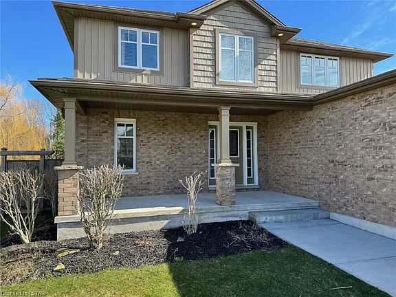 Welcome to your dream home in Mount Brydges! This stunning two-storey house offers the perfect blend of modern updates and classic charm, complete with an attached 2 car garage. Situated on a huge 220+ ft lot on a quiet street, this 3+1 bed, 3+1 bath Home boasts ample space for both indoor and outdoor living. The large kitchen offers gleaming granite counter tops (2022), stainless steel appliances, new beverage bar (2022) and ample cupboard space. The open concept layout of the main floor seamlessly flows into the dining and living room spaces, making it ideal for entertaining guests and enjoying cozy family time by the fireplace. Also located on the main floor is a huge walk-in coat closet, 2 pc powder room and spacious laundry room. Upstairs are 3 bedrooms, each offering comfort and privacy and a 4 pc main bath. The Primary suite is a true retreat, complete with 4 pc en-suite and large walk-in closet. An additional bedroom in the lower level provides flexibility for guests or even a home office. The lower level also has a huge rec room space, perfect for game night! Access to the garage and a large storage/utility room are also located on the lower level. Throughout the home new floors (2021 laminate and carpet in lower and upper levels), upgraded lighting (2022) and fresh paint create a bright and inviting atmosphere. Outside the expansive yard features a huge, remodeled sun deck (2023), and a sprinkler system, run off a sand point well, that ensures lush greenery and vibrant landscaping all season long. Located in the lovely small town of Mount Brydges, this home is zoned for great schools and is a 10 minute drive to Strathroy, 15 minutes to London and offers easy access to the 402. A new playground was installed across the road and this home is also close to the arena, walking trails, pharmacies, medical and dental offices, local restaurants and shopping, and all amenities.