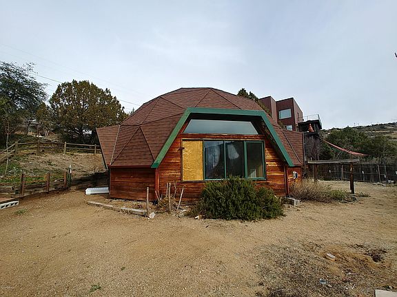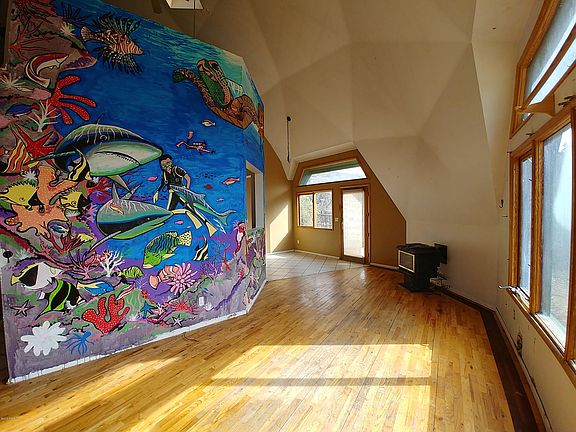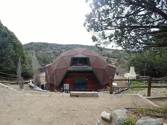 Been dreaming of your very own Geodome at an amazing price? Look no further! This lender-owned home has incredible potential for one lucky buyer! Built on over a 1/4 an acre in 1995, this 2 bedroom 1 ba home is 1074 sf. Featuring an open floorplan, spiral staircase, and custom paint that makes you feel as though you're under water! Wood flooring in living room and upstairs loft bedroom. Outside there is a patio with an outdoor fireplace, and lots of room for gardens. This home is unique, needs some work, but is priced accordingly!