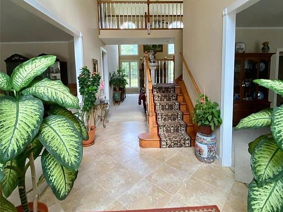 Colonial home with 5 bedrooms, 4 full bathrooms and is located down a long driveway just minutes to I80.  This shrouded property sits on 4.15 acres and offers a ton of privacy. The first floor has a formal living room, dining room, family room, full bathroom, bedroom and laundry room. The family room and foyer share a cathedral ceiling with views of the 2nd story cat walk. There is a stone hearth wood burning fireplace and large windows to let in natural light. The eat-in kitchen is open to the family room and has an island, plenty of cabinets and counter space. Laundry is located right off the kitchen. On the 2nd floor you will find a 25X15 master bedroom with sitting area and the spacious 18X15 bathroom with jacuzzi tub and huge 13X13 walk-in closet. There is a full bathroom in the hall along with 2 more bedrooms.  The last bedroom is en suite with another full bathroom. The basement is partially finished with a wood burning fireplace. The home has so much to offer!