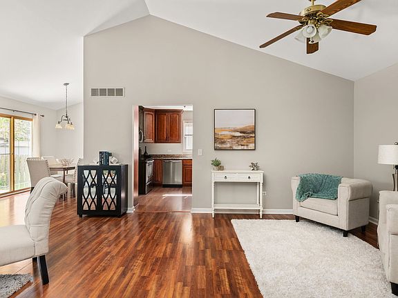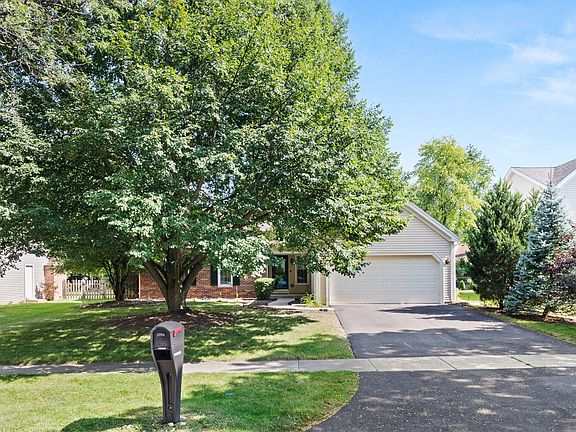 Welcome to this beautifully maintained ranch home featuring a combination of brick and aluminum siding. Step into a spacious kitchen with granite countertops, 42" maple cabinets, stainless steel appliances, and a convenient coffee bar perfect for your morning routine. The open living area boasts vaulted ceilings and a cozy brick fireplace with a gas starter, creating the ideal space for relaxation. Outdoor lovers will appreciate the concrete patio, surrounded by stunning gardens, mature trees for added privacy, and a fully fenced yard, perfect for entertaining. Located in a sought-after neighborhood with a fishing pond and parks, this home offers easy access to outdoor activities. Kids can walk to nearby schools, and you're just minutes from the Metra, restaurants, and top-rated schools. This home is in an unbeatable location-don't miss out on this incredible opportunity!