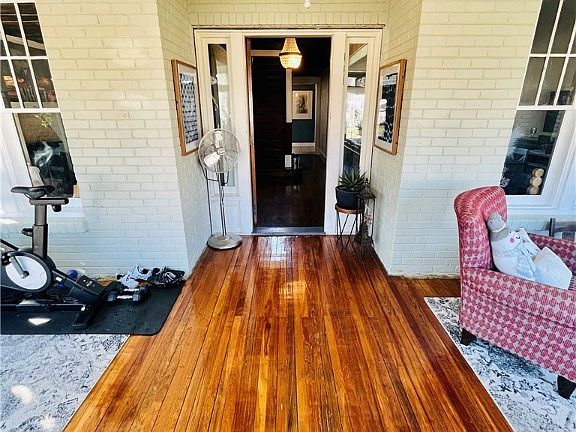 - Description: Enormous enclosed front porch with architectural windows.,Flooring: Wood
