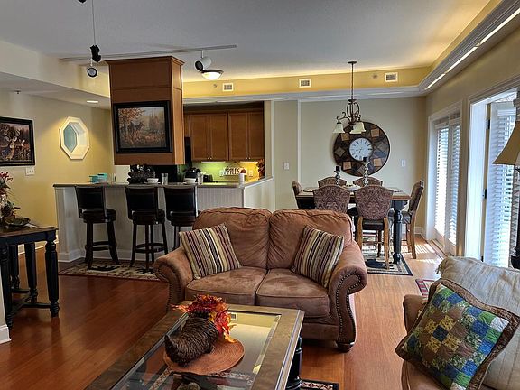 This condo is walking distance to downtown. No parking fees to pay! It has an easy access to unit with an elevator. Spacious rooms with not one, but two balconies to enjoy the great outside with a cup of coffee! Ready to occupy-- just pack your bags and enjoy downtown Gatlinburg at its best! Fully furnished ready to use!! Large open living room/dining room/kitchen with gas fireplace and hardwood floors. This area open on to the large balcony. Master bedroom has separate balcony, large bath with two sinks, jetted tub and walk in shower. Guest bedroom has full bath with tub/shower combo and door to large balcony. Very light- with lots of windows! Hallway has closet space and stacking washer/dryer unit to convey. All this and a short walk to downtown shops and restaurants. There are several covered parking spaces-- there are no assigned spaces.