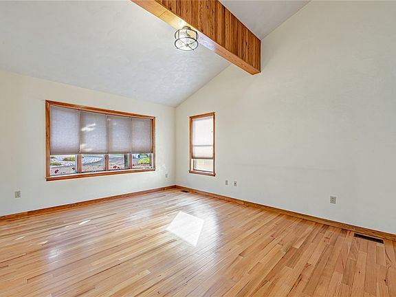 Well maintained house with 5 level acres. Beautiful pond in rear corner of property. 24X16 maintenance shed & oversized 2 car detached garage. Let's talk about the house! Enter to an open floor plan consisting of vaulted ceilings through-out the living room / dining room with beautiful hardwood flooring that flows into the well-appointed kitchen & breakfast area with vaulted ceilings, skylights, solid surface counter tops, matching backsplash & ceramic flooring. Master bedroom has gorgeous teakwood flooring leading to laundry room & 2 other bedrooms, all with vaulted ceilings. Beautiful lower-level huge game room with hardwood flooring, private den/study or 4th bedroom. Incredibly beautiful sunken sunroom with vaulted ceilings, recessed lighting, ceramic flooring surrounded by glass. Live upstairs & enjoy the lower level to relax.