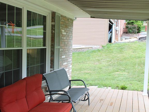 Raised ranch brick with replacement windows, new front porch and deck . Kitchen appliances replaced approx. 2 years ago. 3 bedroom 1 1/2 bath, large Living room with fireplace, hardwood floors , large family room with fireplace downstairs also office or storage room behind stairs in basement, drive under garage plus work shop. Great starter home or downsizing