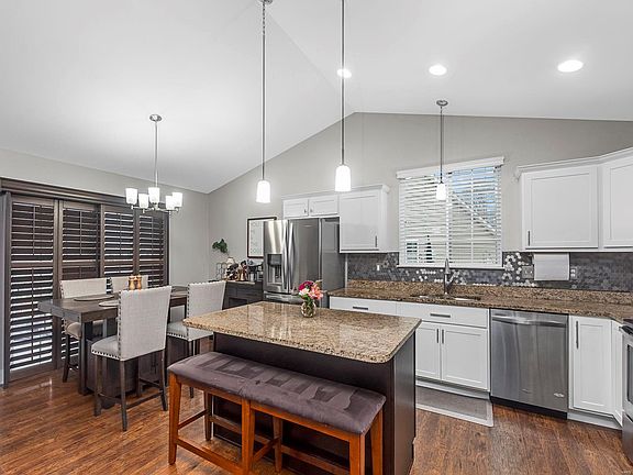 - Kitchen/Dining Room Combo, Center Hall Floorplan, Open Floorplan, Vaulted Ceiling(s), Walk-In Closet(s), Kitchen Island, Eat-in Kitchen, Granite Counters, Pantry, Double Vanity, Lever Faucets, Shower