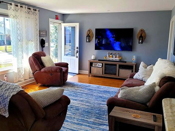 Sorry the open house for Sunday is canceled. Look no more, don't miss out on this Beautiful Rancher! One Floor living at it's best. From the minute you drive up you'll notice the way this home has been maintained with new concrete driveway leading up to the double gate to enter an extended driveway, newer vinyl siding, soffits and roof all under 5 years old. As you get closer, you will see other details such as the nicely done hardscaping and gardens with solar lighting, next enter through the new full glass storm door and beautiful front door. Upon entering you cannot help but notice the well-kept original hardwood floors, the open floor plan, custom window shades and natural lighting. The kitchen is perfectly designed including custom soft close cabinets with 42" upper cabinets, Granite Counter tops, tile backsplash, recessed lighting and Stainless-Steel appliances including over the range microwave and gas range, don't forget to look down at the wood plank look ceramic tile floors, the corner sink is under two windows which have custom blinds and makes it easy to check on kids or pets in the back yard. Move onto the 3 nice sized bedrooms all with hardwood floors, ceiling fans and room darkening shades, now the hall bath with tile floors, ceramic tiled tub/shower with glass doors. Going next down to the basement which is unfinished but currently used as extra living space having a sitting area, game room, laundry area complete with laundry tub, plus a large storage area, the basement also has a drainage system and updated 150 Amp Service. Our next stop is out the back door, which also has a newer storm door, as soon as you step out you can't help but notice the huge, back yard fully fenced with 6' vinyl fencing and a well-constructed Gazebo with a metal roof, making a perfect sitting area out of the sun or rain, there is also plenty of sitting area on the newer concrete patio and additional storage for those garden tools in the newer shed. There are newer energy efficient replacement windows through-out the home. and so much more, it just feels like home! Other info please see info attached to listing "Flood Insurance is NOT Required.
