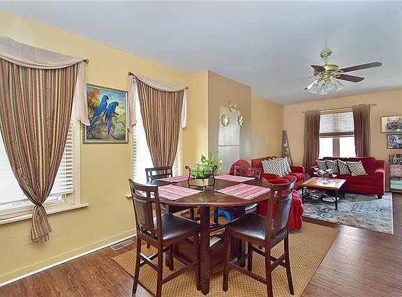 Come check out this move-in ready single family end unit home with over 1900 sq. ft. of living space. Spacious eat-in kitchen. 1/2 bath and laundry room off the kitchen with access to the fenced in back yard. Beautiful hardwood floors in the open concept living and dining room with a beautifully sculpted handrail that leads to the 2nd floor where you'll begin to find 2 of the 4 large bedrooms and plenty of extra storage space. Move up to the third floor and there you will find the remaining 2 bedrooms. Below the home offers a full unfinished basement waiting to be remodeled. There is currently a partially finished bathroom with shower stall installed in the basement that would just need a little TLC to become an additional full bath to use. This home also offers a covered front porch so you can sit outside and relax during the upcoming warmer days and nights. Don't wait to make a move on this one! Schedule your appointment today!!