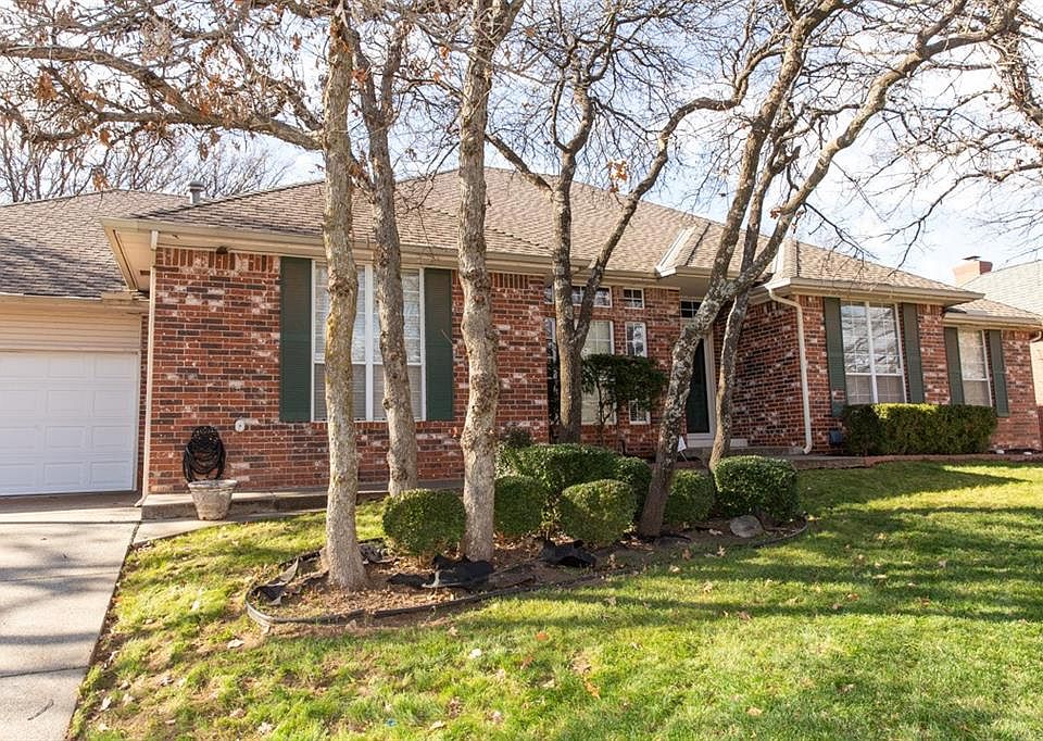 As you walk in the house the formal dining room with wood trim to left, then walk forward to living room then left dining room and kitchen. Open kitchen into the 2nd Living with built ins and fireplace. A separate bedroom with a full bath on one side, the three other bedrooms are on the other side. Spacious Master bedroom with entry to backyard. Master bath has califonia closet, shower and whirlpool tub. Covered porch with landscaped backyard with french drain. Sprinkler system in front and backyard. 2 Car garage plus 200 sq ft workshop area in garage. 2 minutes away from Kickingbird golf course. 5 minutes to I-35 and 5 minutes to downtown Edmond.