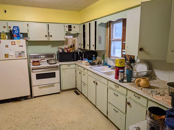 Great investment opportunity or own your home with income. This duplex has vinyl siding and an asphalt roof. The main floor apartment has 2 bedrooms and basement access. The second floor apartment has one bedroom with potential for a second. A garage is located on the east end of the home with alley access. This home could be converted back to single family if desired. Property is being sold as-is along with any remaining personal property.