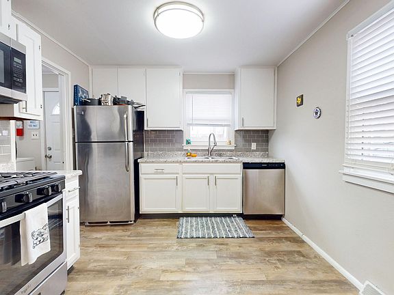 MOVE IN READY Ranch home located on a Low Traffic Street. Features a front living room, adjoining kitchen, 2 bedrooms and full bath. Shared driveway leads to 1 car garage (manual open). Laundry is off to the back with door to outside. Nice back yard with bonus shed in back. This home has been completely remodeled in recent years to include New roof, windows, siding, furnace, water heater, flooring throughout, updated kitchen with stainless steel appliances.