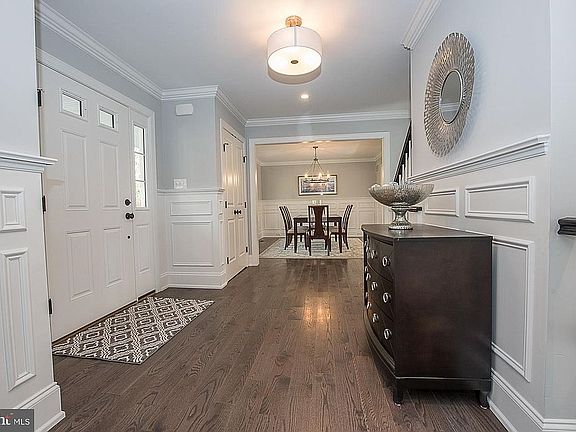This spectacular Walk-to-Wayne Colonial in Radnor Township has been completely renovated by Custom Builder, Sposato Homes, into a 4 bedroom, 3 full and two half bath light filled home with a wonderful open floor plan perfect for today~s lifestyle. Flagstone steps and landing lead to the front door flanked by black lantern lighting. Enter through the front door with side lights, into the spacious foyer with two double door coat closets, new hardwood floors, deep crown molding, and custom wainscoting that continues into the spacious dining room with stunning 5 light chandelier. The beautiful hardwood flooring continues through most of the first and second floors. To the right of the foyer is the Office/Den with glass French doors and crown molding. The gourmet custom kitchen has white soft close cabinetry, quartz countertops, subway tile backsplash, and an 8 ft. island with seating for four. Stainless GE Caf~ appliances: French door refrigerator, 6 burner gas range, dishwasher and XO stainless hood, Sharp drawer microwave, Kraus stainless farmhouse sink, recessed lights and polished nickel pendant lights. Cabinetry includes a pantry with pull out shelves and a spice drawer. The Breakfast room located between the kitchen and the family room has a beautiful polished nickel 5 light orb chandelier and sliding glass door out to the Timber-Tech Deck. Close by is the open staircase to the finished lower level. To the left of the kitchen with oversized gray tile floor is the mudroom with a large pantry closet, coat closet, powder room, mudroom bench and cubbies, access to the two car attached oversized garage, a glass panel door to the rear deck and a laundry room with cabinetry, utility sink and broom closet. The Second Floor has four bedrooms all with hardwood floors. The master suite has crown molding, a large outfitted walk in closet and Master Bath with oversized subway tile flooring, white double sink vanity with Carrera Marble Top, spacious tiled shower with bench, two shower heads and frameless shower door and a private water closet. Bedroom 2 has a double door closet and en-suite bath with penny tile floor, tub/shower combination, white vanity with Carrera Marble. Bedrooms 3 and 4 have double door closets and share the hall bath with double sink black vanity cabinet, hexagon tile floor, a tub/shower combination with subway tile surround and linen closet. Off the Foyer an open staircase with hardwood floors invites you down to the daylight finished lower level with neutral carpet, a gas fireplace with stone surround and hearth, a powder room, deep sill double window and sliding glass doors to the brick patio, utility closet, storage closet with access to bilco door. Other features: new roof, new windows throughout, recessed lighting, two new HVAC systems for dual zone heat, new manabloc water system and new electric.