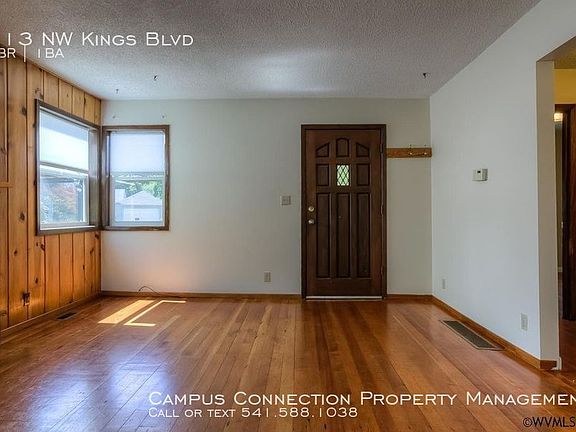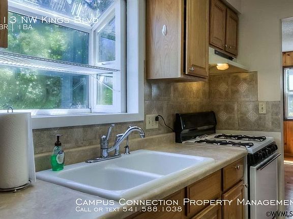 SCHEDULE A SHOWING ONLINE AT: showmojo.com/lh/5823ef90ed Available for September 9th move-in, this recently updated 3 bedroom/1 bathroom Corvallis home is conveniently located on NW Kings Blvd - amazing walkable location just one block from Fred Meyer, four blocks from OSU campus, only steps away from the bus stop and walking distance to restaurants, bars, and shopping. Home features new carpet and energy-efficient double pane vinyl windows, wood-burning fireplace, beautiful fir wood flooring, forced air heat, attached single car garage, and large fenced yard with hops, wine grapes, artichokes, and a Japanese maple with yard care provided. Washer, dryer, dishwasher provided. Tenants pay all utilities and garbage. Some pets OK that meet CCPM Pet Policy requirements. $1,800 refundable security deposit. $50 application screening fee per adult. Lease through August 31, 2020. Garage Yard Care Provided