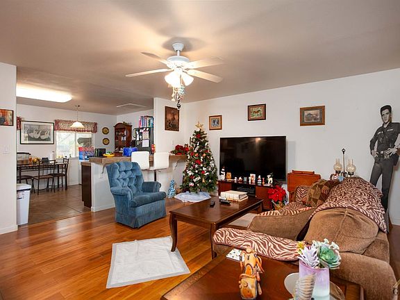 Kern city charmer that stands out from the rest with newer a/c, windows, plumbing, and tankless hot water heater. Beautiful laminate wood flooring and tile along with tastefully remodeled kitchen. Long extended driveway with RV parking and cleanout. Covered patio and spacious backyard. Come check out this 55 plus area and home with reasonable hoa fees.