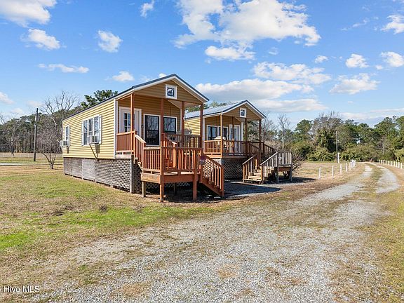 Welcome to the delightful Lazy River Cottages, a unique waterfront property offering two cozy cottages in the heart of Oriental, NC. These charming 1-bedroom, 1-bath cabins (each approximately 405 sq ft) are perfect for fishing enthusiasts, boating lovers, or those looking for a potential investment rental. Located in a prime spot at the mouth of Greens Creek, these cottages are ready for their new owner to enjoy all the possibilities they have to offer. Each cottage features a private bedroom, built-in bunk beds, and a comfortable layout designed for relaxation—perfect for weekend getaways, family vacations, or income-generating rentals. With deep water access and a private dock, you'll have direct access to the Neuse River, providing easy access for boating and fishing. Whether you're looking to explore creeks or head out on the Neuse River, the water is just steps away. A covered area near the dock offers the perfect spot to unwind and enjoy the stunning views after a day on the water. This property offers the best of both worlds—peaceful waterfront living with the convenience of walking or biking into the charming town of Oriental for dining, shopping, and sightseeing. Whether you're an avid fisherman, a boating enthusiast, or simply in search of a peaceful retreat, Lazy River Cottages offers endless possibilities. Don't miss the chance to own this incredible waterfront property and experience life by the water in Oriental, NC!