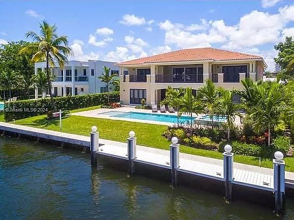 Waterfront mansionCovered terracesOutdoor grillDesigner kitchenSoaring ceilingsOversized poolImpact windows