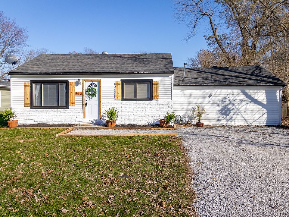 Tucked just outside of town, this 3 bedroom bungalow is ready for you to move in! Move-in ready or excellent investment opportunity. Spacious living room & kitchen with decorative built-in shelving. 2 bedrooms flank the kitchen area. The garage has been converted into living space and makes a large 3rd bedroom or a second family room. Large laundry room off the converted 3rd bedroom. There is a partially fenced backyard and small storage shed. New HVAC & roof is 3 years old. Fresh modern palette, new vinyl plank flooring & new kitchen cabinets! Come and enjoy this quiet neighborhood, just outside of Columbus!