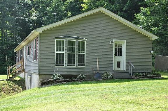 The house sits well back from the road in a very private setting on five acres of land. Open floor plan that includes a large kitchen with island, dining room and living-room with fireplace. Main level laundry/mudroom. The walk out basement could easily be finished to add additional living space. Large treed yard with a large barn and two smaller storage sheds. Approximately one half of the lot is woods. Easy commute to Ithaca, Dryden, Cortland, Owego, or Binghamton.
