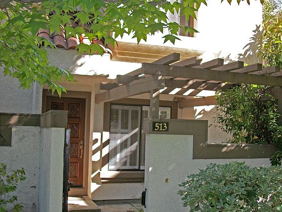 Lovely End Unit Townhouse with 2 Master Suites. 513 Pimlico Ct is a beautiful 2 bed 2.5 bath townhouse in a lushly landscaped setting, 10 minutes walk from Walnut Creek BART. This is a rare two-story end unit with side windows. In excellent condition with brand new hickory hardwood floor downstairs. The hardwood continues up the stairs to the upper level hallway. The two master-suites have laminate floors in the bedrooms which extend into the walk-in closets, and ceramic tile in both remodeled full bathrooms. The downstairs half-bathroom and kitchen have granite tile floors. There is absolutely zero carpet anywhere in the home. Details: One year lease at $3350 per month, including water and garbage collection 1178 sq ft with front and rear gated patios Two large master suites with full bathrooms 11ft ceilings with fans in both bedrooms Crown molding throughout the home Wood/gas fireplace Open plan living/dining area with brand new pecan hardwood floor Remodeled galley kitchen with granite counters Stainless steel appliances: brand new stove Hand-stained solid maple kitchen cabinets Lots of storage space Plantation shutters on all windows Washer/Dryer upstairs Central heat and A/C Zero carpet anywhere 1 min walk to tennis court 3 min walk to swimming pool, hot tub 5 min walk to Iron Horse Trail 10 min walk to BART with direct service to SF and SFO 20 min walk to downtown Walnut Creek stores, restaurants, and nightlife Easy freeway access Never, ever smoked in Top rated K-12 schools in Walnut Creek/Acalanes school districts One underground parking space close to rear entrance One permit for unassigned outdoor parking Well-behaved small pet welcomed Definitely no smoking Water and garbage collection are included
