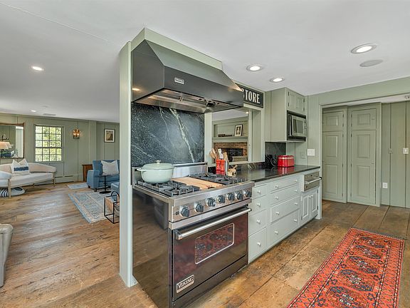 Historic Gilmanton NH will welcome you home every day.We have historic character with quality features blended now with modern appliances and mechanics throughout including a brand new roof. This unique property offer a commercial opportunity too! IDEAS bring em!! It is commercially zoned and was once the Gilmanton General Store Our entire home was professionally restored in 2002 leaving Indian shutters, some open out while others retract into the wall, three spectacular fireplaces, exposed beams, and wide pine flooring. First floor has a great room with a wood burning fireplace certain to support your entertaining with family and friends. On the other side of the center staircase is a living room with another fireplace and a primary bedroom with full bath. You can step out onto a covered porch surrounded by a fenced in area for outdoor enjoyment. Absolutely stunning first floor appointed with original hardware, brick floors, lots of big windows that allow the sunlight to filter through to warm your heart. Our second floor kitchen is commercially equipped with appliances for the cooking enthusiast in the family.Open concept flows from kitchen to family room and dinning with another fantastic fireplace. Second large primary bedroom with 3/4 bath and still another spacious bedroom with two king size beds. We have a detached three car garage and cobblestone driveway surrounded with mature landscaping and granite posts.