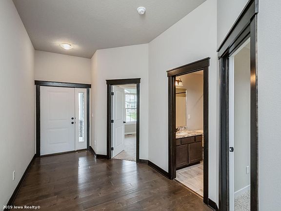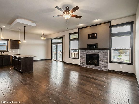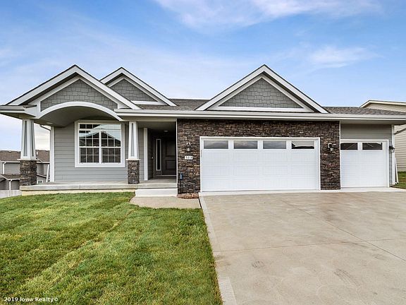7 YEAR TAX ABATEMENT Enlarged SUMMIT IV ranch. Walk out. 22x26 oversized 2 car garage, and a 10x20 3rd car garage, 12x14 covered deck. 6' deep front porch, Hardi plank siding. 10' flat ceilings in kitchen, dining, and Great Room, and vaulted in bedrooms 2 and 3. Master bedroom has trayed ceiling. Granite bathroom counter tops in all, and Master bath. Granite kitchen counter top, stainless steel gas range, dishwasher and space saver microwave. Stained mission style trim in the entry, kitchen, dining and Great Room with painted interior doors. Hardwood in kitchen and dining, ceramic tile drop zone, baths, entry and laundry. Ceramic shower in Master with mosaic tile floor. 96% furnace and 14.5 SEER air conditioner. Yard fully sodded.