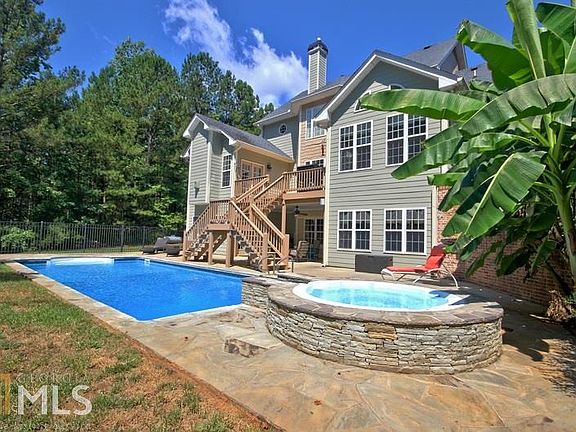 HERE IT IS! This one is a Beauty! Private winding drive leads to this truly Southern Charm home with Rocking Chair front porch. Enter into this lovely foyer to an open flowing plan, soaring great room, harwood floors through main level, kitchen with custom tile-granite-island cooking and vaulted bkfst all with view of pool & lake. Upstairs find 3 spacious bdr, 2 full baths, Library. Terrace Level hold Great Rm, Rec area with bar, office, bedroom, full bath and small library. Relax by the heated saltwater pool, hot tub or take a walk down to the lake and fish or just sit on your own private dock. The 3 car side entry garage, enters to mud room off kitchen. So come on over and view your new home.