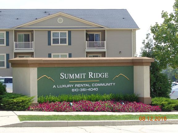 INDULGE IN A 2 BED, 2 BATH MODERN APT Summit Ridge Luxury Apartments 610-351-4040 FEATURES Contemporary Styling Modern Kitchen w/ full black appliance package Two full bathrooms Full size washer/dryer in every apartment Mountain views 24-Hour Maintenance Service On-Site Property Management Controlled building access and individual intercoms Community center w/ 24 hour fitness and coffee bar Convenient East Allentown location- close to the airport, major highways, and the City of Allentown Rent includes water, sewer, and trash services! We work with numerous cable/net service providers. Pet friendly! Call today for more details and to schedule your personal tour: 610-351-4040 includes water, sewer and trash