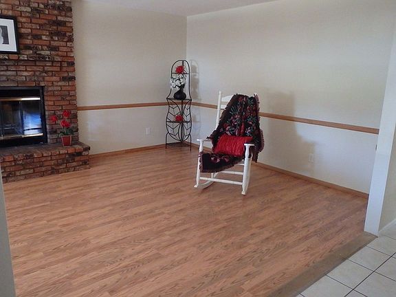 Put the kids to bed & retire to master suite upstairs! Xeroscape in front w/pine tree.Inside spacious living rm w/brick fireplace & laminate floor. Directly across is dining area w/fan & cook's kitchen:tiled floor;new 5 burner range w/convection oven,mw '15,dw'12.Tiled counters & backsplash.Builtin pantry & breakfast bar.Enormous family rm has new carpet inlay(floor plugs underneath).Entertainment bar has sink & wine rack.Under stair storage.Back to entry, pegs for backpacks,etc.Guest bath on right has new toilet.1st bedrm on left has wood laminate flr & open closet.Next bedrm has crown molding,carpet,fan & walkin closet.Storage area at end of hall.To right is original mstr suite w/wood blinds & walkin closet.Opens to bathrm with shower;also to family rm.Upstairs romantic hideaway:wall a/c unit & covered balcony w/view.Jacuzzi tub plus shower & walkin closet.North side of garage is storage area for bikes,tools.Covered patio open to garden & Espalier row of 8 fruit trees:apple,pear,peach,apricot; baring over 4 months.2 berry bushes.Water heater '15.Furnace new transformer.Wall of cabinets & laundry in garage.North & west fences under 3 yrs old.Sprinkler bx on south.Cooler on roof