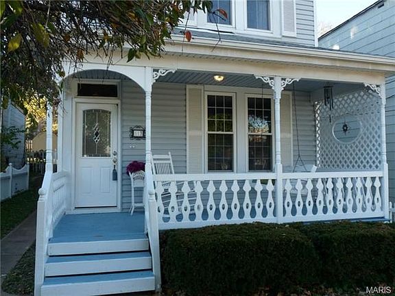 Charm & character abound in this 1904 two story home just a short walk to St. Charles Main Street & all its amenities. Darling covered front porch to visit with passersby. Vinyl siding, entry door, windows, front porch, HVAC & roof have all been replaced & you will not believe the gorgeous updated kitchen & baths! Main floor laundry. Hardwood flooring on main floor was just refinished and upstairs has brand new carpeting! Four bedrooms-some with walk in closets. Fenced yard & cute patio for the warm evenings. Yard has shed & covered carport with additional storage overhead. Lovely perennials in the yard just add to the charm. Basement access is in porch area off kitchen. Lift the door and watch your head!
