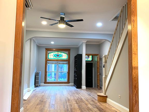 Lovely spacious 2 BR rowhouse with amazing location - just 8 houses from Patterson Park (that's 295 acres of backyard for you)! Hardwood floors on first floor and stairs to 2nd floor, original wood trim, stained glass. 1st floor renovated within the year with new recessed lighting, crown moulding, and paint. Bedrooms have been painted and new ceiling fans. Main bathroom fully renovated within the year with subway tile, ceramic floor tile, new sink/vanity/medicine cabinet/lighting, toilet. New stainless fridge (not in pictures.) Lots of kitchen storage and other house storage. Gated backyard patio perfect for BBQs and container gardening, has a raised garden bed and outdoor lights. Big semi-finished bonus room in basement (with window) for home office, den, hanging out. Main full bath is on 2nd floor, and small 1/2 bath in the basement. Full size washer/dryer, dishwasher, disposal, gas stove/oven, ductless air conditioning for efficiency. Responsive landlords who live nearby. Less than 1.5 miles to Johns Hopkins Hospital, 2.5 miles to Univ of MD Medical Center, 1.3 miles to Harbor East. Walkable to all locations in the Canton neighborhood: Safeway grocery store, coffee/ice cream shops, bars/restaurants. Walkable to Fells Point, waterfront promenade. 8 doors down from Patterson Park for athletics and open space. Parking is on street (no permit required), but proximity to the park loosens up parking. 1 year lease, starting approx October 1, with interest in extending past that. Tenants pay rent, plus utilities (water/sewer, gas/electric, electric). No smoking indoors or on outdoor premises. Credit check requirement. Landlords are a responsive couple who live nearby. Our current tenants are living in the home we will make arrangements to show the house to serious inquiries whose lease timing etc match ours. Seeking tenants without pets.