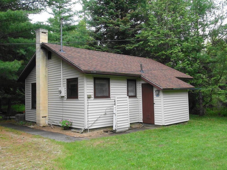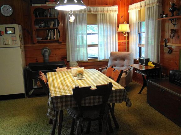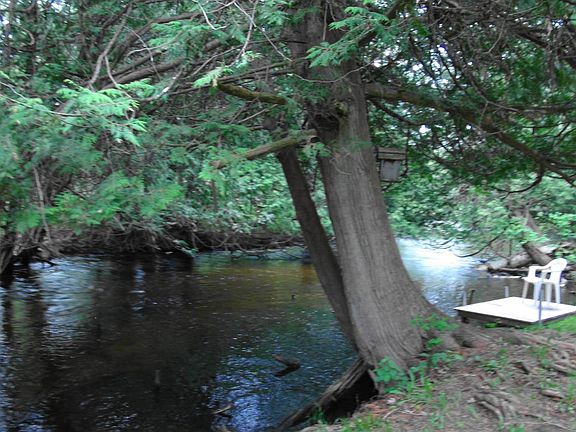 What A River front setting! Only 25' off bank of East Branch AuSable River. 2 bedroom cottage with knotty pine interior. Small but well contained. Riverside deck, creek flowing through property, storage shed. Most furniture included. River porch is ready for new owners!