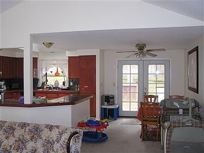 Corner lot, Fenced back yard, nice deck, cathedral ceilings, master bedroom with full bath. Back in the market.