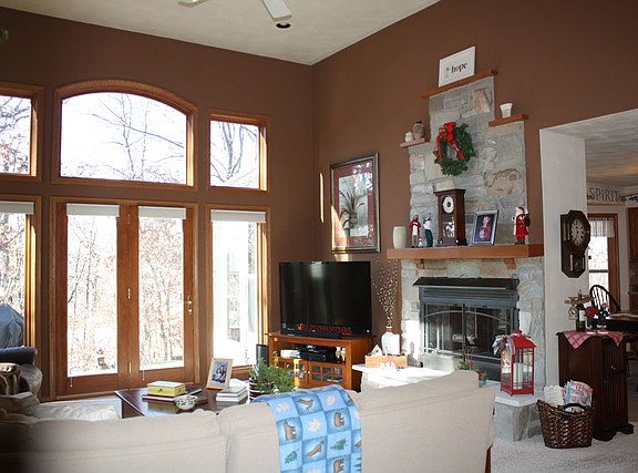 Tastefully decorated and finished home in gated community. The home has a semi open floor plan with a gorgeous living room space that offers two story high ceiling, huge windows and double gas fireplace that leads to the large eat in kitchen. Off of the kitchen is a large three season sun room with tile flooring and door to the deck. Home also has main floor Laundry and master suite, double sinks,shower and bathtub