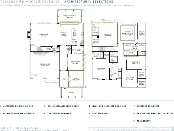 The Preston s impressive, extended covered front porch and foyer reveal the lovely flexible living room, dining room, and kitchen beyond. The well-equipped kitchen overlooks a bright breakfast area and spacious great room. The kitchen features a large center island with breakfast bar, ample counter and cabinet space, a butler s pantry, and spacious pantry. In additional, the first floor showcases a private dining room for formal entertainment and a flexible living room. The second floor provides a splendid view of the great room below. The secondary bedrooms are spacious and offer walk-in closets. The primary suite has a spa-like retreat with a dual-split vanity, luxe-glass enclosed shower, linen closet, private water closet, and large walk-in closet. Additional features include a centrally located laundry and ample storage space. Disclaimer: Photos are images only and should not be relied upon to confirm applicable features.