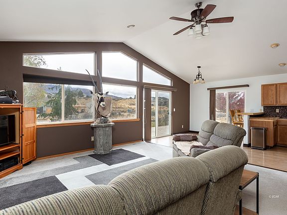 Located on a quiet corner lot, this home allows you to wake up to the beautiful Ruby Mountains every morning! Meticulously cared for, this single-level home has a large open living area with large windows & a great front deck. The kitchen has new appliances & the main living area was recently painted. The bedrooms are great sizes and there's a thermostat-controlled pellet stove that will keep you cozy all winter long! Aside from having just over an acre, this home also has a large 3-car garage! (You won't find another home in this price range with a 3-car garage!) The backyard is fenced and has drive-through gates for easy access plus a sprinkler system keeps the yard easy to maintain.
