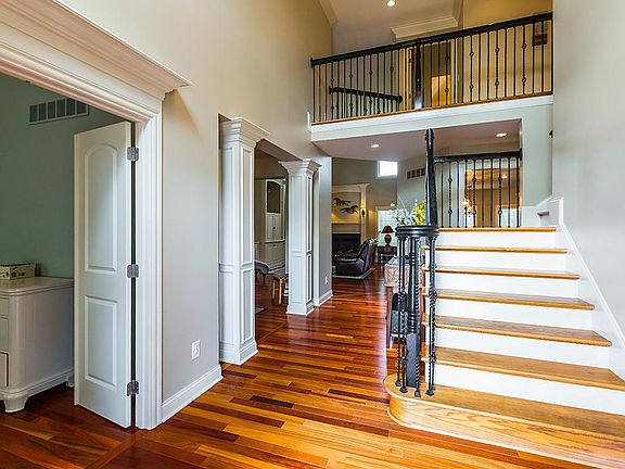 New price and sellers are motivated! Beautiful Jimmy Nash built home nestled on a quiet court in the immaculately maintained Still Meadows neighborhood. Impressive design and craftsmanship ring through this home with its intricate details. Modern open plan with 9' ceilings on the 1st level and gorgeous Brazilian cherry hardwood greet you upon entering the home, as well as a wide wood staircase with iron railing that takes you up to the 2nd level overlooking the custom cabinetry and fireplace in the 2-story great room. The kitchen has an abundance of custom cabinetry with beautiful granite along with upgraded stainless steel appliances. This home has over 4200 sq. ft., including a finished basement, a 1st floor master suite with coffered barrel ceiling, 1st floor office (a potential 5th bedroom), a 2nd level with 3 large bedrooms and bonus room. This home is situated in the circle and is beautifully landscaped with a private back yard.