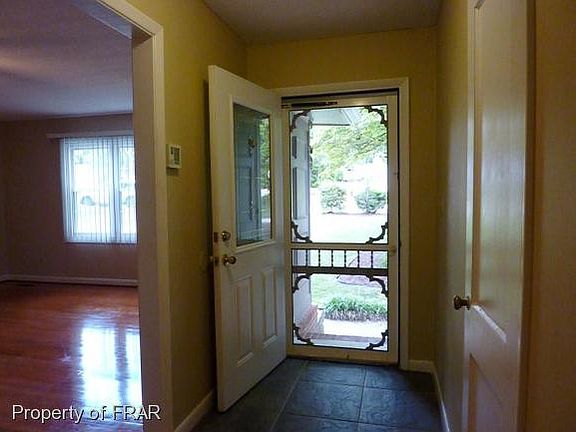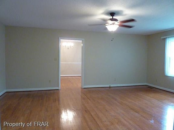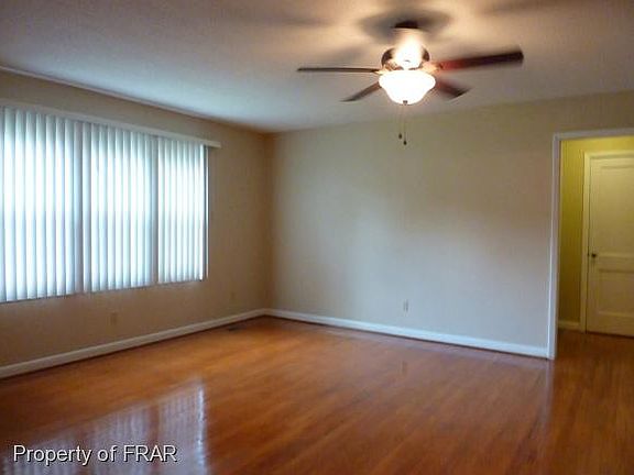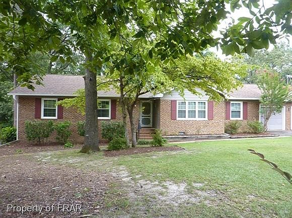 Spacious 3 BR brick ranch w/newer roof, replacement windows, freshly painted trim = Low maintenance! HVAC within the last 6 yrs. HUGE kitchen w/updated counters & new Kenmore appliances. Den w/FP opens to huge deck. Large fenced backyard, under walk-in storage rm under the house. Storage Rm in garage. All formals & all good size! Carpet only in den w/masonry FP, hardwoods except tile in kit & baths. Minutes to Ft Bragg & mall area.