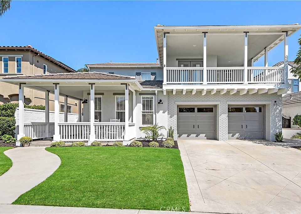 Awash in natural light and replete with timeless charm, this meticulously upgraded San Clemente residence embodies coastal elegance in the heart of Talega’s San Rafael neighborhood. Set on a serene street bordered by two cul-de-sacs, the expansive two-story home overlooks lush open space, offering sweeping vistas of the championship Talega Golf Course, gentle rolling hills, and glittering evening lights. A spacious wraparound front porch creates a warm welcome, leading into an interior spanning approximately 3,734 sf with soaring double-height ceilings and a striking 3-tier staircase. This home’s layout balances sophistication with warmth, featuring formal living and dining areas ideal for refined gatherings. The family room, a cozy haven with a custom stacked-stone fireplace topped by a 350-year-old reclaimed wood mantle, flows into the fully remodeled chef’s kitchen. Outfitted with premier Wolf and Sub-Zero appliances, including a built-in refrigerator and 6-burner range, the kitchen boasts custom quartz counters, pristine white cabinetry, walk-in pantry, built-in desk, and a subway tile backsplash. La Cantina accordion doors blend indoor and outdoor spaces, inviting sunlight and creating seamless access to the backyard. With 5 bedrooms, plus den and 4.5 baths, the home includes a main-level guest room with direct backyard access and a fitness room. Upstairs, 3 secondary ensuite bedrooms—two of which share access to an oversized deck—offer comfort and style, while the grand primary suite provides a sanctuary with fairway views, dual walk-in closets, a sitting area, and a spa-inspired bath featuring Shaker cabinetry, quartz countertops, separate vanities, soaking tub, and a frameless glass-enclosed shower. Modern upgrades include solar power, new wide-plank luxury vinyl flooring, fresh interior and exterior paint, designer lighting, plantation shutters, in-ceiling speakers, carpet, archways, custom closet systems, a new water heater, and a 2-car garage with custom storage and epoxy flooring. Outdoors, a 6,212-sf lot boasts fresh landscaping, large patio, and ample room to realize visions of a resort-style pool, spa, and outdoor kitchen. Just a stroll away from the acclaimed Vista del Mar K-8 school and moments from Talega Village Center’s shops, restaurants, the Talega Golf Club, parks, swimming pools, and San Clemente’s iconic beaches and pier, this exceptional residence perfectly captures coastal California living at its finest.