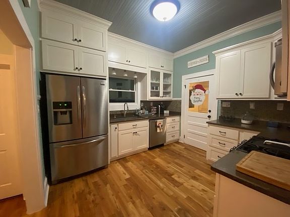 Charming house in Historic District in Downtown Dalton. Hardwood floors throughout this gorgeous home with high ceilings and lots of character. Two bedrooms, 1 bath, large living room, dining room with french doors, and eat-in kitchen. Laundry room/need room in rear of the house. One car garage with storage. Outside living with pergola and plenty of space to entertain. This is a must-see to believe!