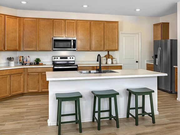 This beautiful home features an open concept floor plan with 9-ft. ceilings and a generous great room that offers access to a covered back patio with views to the south. The kitchen includes 42-in. upper cabinets, a center island, laminate marble-like countertops and Whirlpool(r) stainless steel appliances. The primary suite features a walk-in closet, and the primary bath boasts a spacious shower, and a dual-sink vanity. This ENERGY STAR(r) certified home also includes a Carrier(r) 14 SEER air conditioner with programmable thermostat by Ecobee. This community offers a playground, outdoor circuit training course, and a small, quaint community feel. See sales counselor for approximate closing timeline for this move-in ready home.