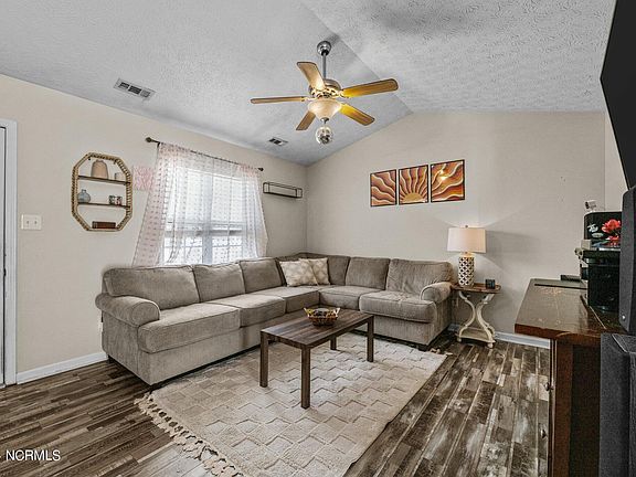 Welcome to a charming home that maybe just right for you. Enjoy the large, fenced back yard with a great storage building, beautiful shade tree and a nice sized deck. Inside the principal suite will surprise you with its size. The dine in galley style kitchen provides ample counter space and a pass through to the living area making it great for entertaining. The lovely vinyl plank flooring is less than 5 years old. A new roof was installed in 2021. The location is great for a commute to MCAS Cherry Point or to other locations in New Bern.