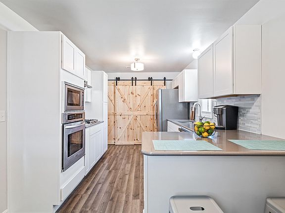 This 3 bedroom, 1 bath all brick home located in the heart of Chandler has been completely remodeled. The kitchen has new appliances (featuring a gas cook top!), shaker cabinets, quartz countertops, farmhouse sink, and a cute tile backsplash. The kitchen is completed with an updated laundry room with sliding barn doors and storage on one end and an eat-in counter and bistro table on the other. This area flows into the large living room. All new flooring, paint, outlets, trim, ceiling fans, fixtures, and hardware throughout, as well as a new front door and porch light. The bathroom has been stylishly updated with new lighting and a custom tile floor. There are three ample sized bedrooms with closets. The home has a new HVAC, Google Nest, and double pane windows with aluminum wrap for energy efficiency. Don't miss the mechanical, remote controlled window blinds throughout whole home. Outside, you will enjoy a flat yard, a huge driveway, newly painted 2 car detached garage with rear storage, and an attached over-sized carport and new sidewalks.
