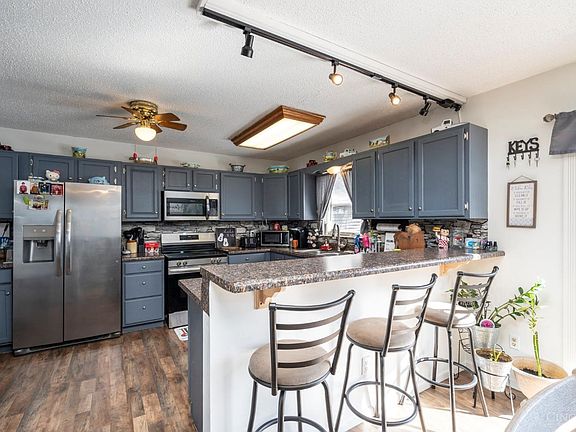 - Features: Counter Bar, Wood Cabinets, Laminate Floor