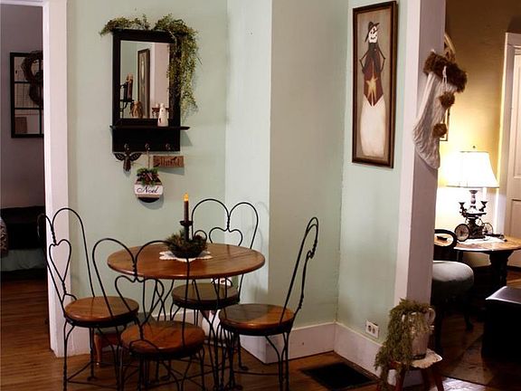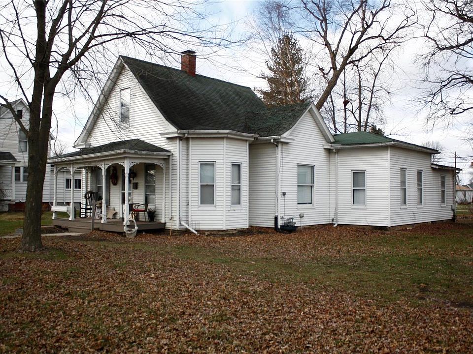 This home offers 1531 sq. ft. of living space on the main floor with 2 to 3 bedrooms, main floor laundry, large, enclosed back porch is perfect for lounging and relaxing. Large rooms, high ceilings, hardwood floors, cabinet filled kitchen with pantry and pull-out drawers, swinging door, newer electric oven is included. Nicley updated full bath with laundry space for a stackable or side by side. This versatile floor plan offers options to fit your lifestyle. Off the kitchen is a mostly finished room in the upper level. This home offers tons of storage throughout. Newer furnace 2022, updates to plumbing 2023. Covered front porch, barn built in 1912 needs some TLC but usable. Situated on two level lots just minutes from downtown.