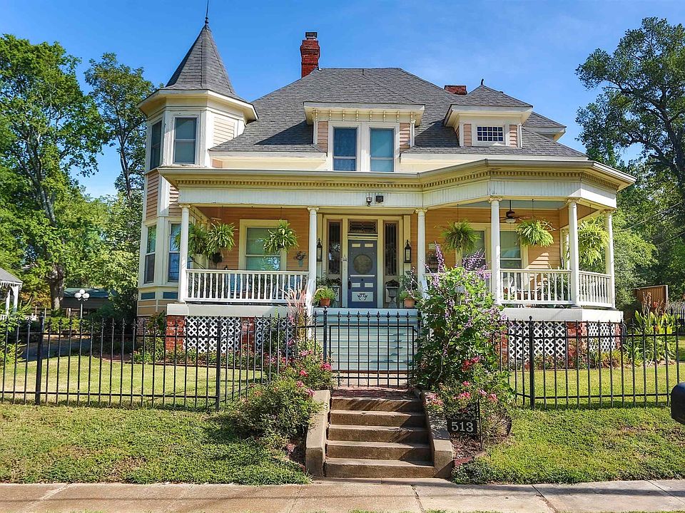 Beautiful Queen Anne Victorian home located near the historical downtown Marshall, Texas. This prestigious home was built in 1905 by Nathaniel Matthewson of Matthewson Drug Company-still in operation today. It boasts 5 bedrooms, 3.5 baths & 3394 square feet on 0.580 landscaped acres. Plenty of outside entertainment to enjoy neighborly conversation on the front porch or shaded gazebo area, relax in the covered screened-in porch or soak up some sunshine on the back deck. There is a detached 2-car carport & 2 storage buildings (1 w/electric). The expanded eat-in kitchen features new flooring, granite countertops & bountiful storage in the original built-ins & ceiling height cabinets. There is a formal dining area, a parlor for welcoming guests & a den. Rare curly pine adorns the stairway newel posts; baluster & interior door frames & features original wood floors throughout. One bedroom downstairs & another upstairs bedroom have en-suite full bathrooms. Three more bedrooms & a bath upstairs. Many original features & recent updates make this a remarkable find! Marshall is home to Wonderland of Lights, East Texas Baptist University, Wiley College, Texas State Technical College, the Starr Family Home, 1901 Harrison County Courthouse, a revitalizing bustling downtown & only minutes away from Caddo Lake State Park & Lake O’ the Pines. Convenient commute to Longview, Tyler & Shreveport, LA. Don’t miss out on this one-of-a-kind historical charmer!!