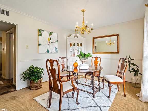Charming Colonial with updated electrical and plumbing!! Move- in ready with new carpet, HVAC, privacy fence and landscaped yard. Best walking neighborhood in Mobile and close to great schools, shopping, restaurants, interstates and hospitals! Large primary bedroom with walk-in closet and en-suite bath. Beautiful Old Chicago brick floors in kitchen, den, sunroom and foyer. Double carport side entry into kitchen with double oven range, refrigerator with water, ice, dish washer, garbage disposal all in working order. Enjoy your morning co?ee in sunroom overlooking your private backyard garden. Back on the market and priced to sell! All information provided is deemed reliable, but not guaranteed. Buyer or Buyer' Agent to verify all pertinent information