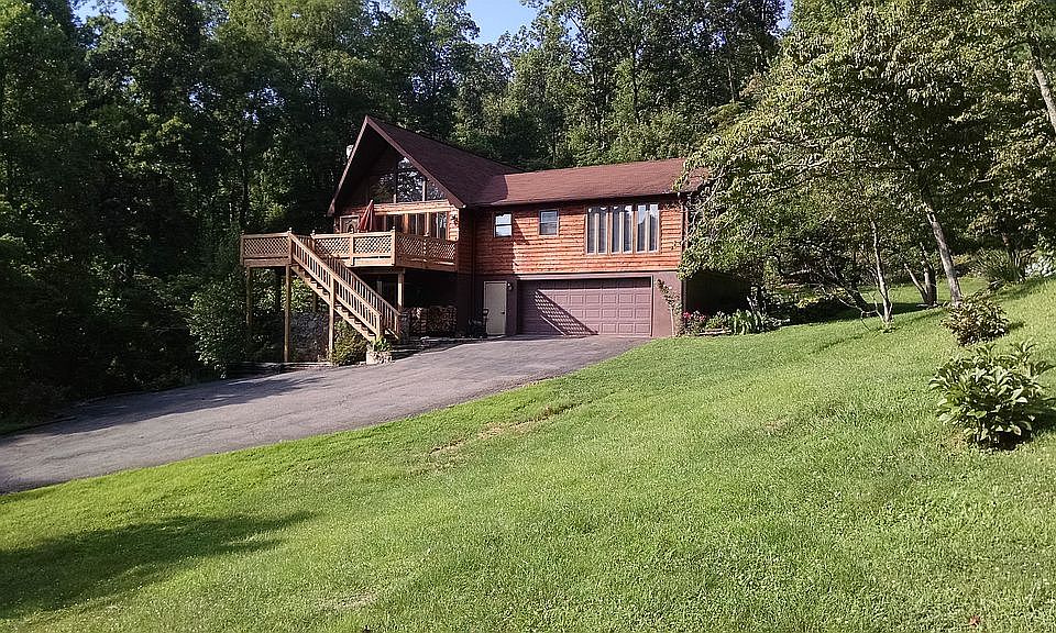 Mountain living with beautiful view and your own private picnic area complete with pond and picnic table! With high speed Internet! Fruit trees make this the perfect retreat to relax. Upper portion of property has large garden area which needs your love! Two large decks for outdoor living, cathedral ceiling with views for the indoor dweller. Freshly painted interior with new blinds in bedrooms and new microwave and water heater. Smaller counter in kitchen on wheels can be moved into dining area if preferred. Private setting and room to roam on over 5 acres. A combination of cleared and wooded areas to explore. Lower level of home is large enough for whatever your needs might be. Wet bar with fireplace and gas line to interior grill! Add'l single garage in basement not included in unheated sq ft used for storage with wood burning stove to really bring the heat in the winter! New Septic tank installed this year.
